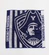 説明 ストライプベースのデザインにプライマリーロゴを大きく施したハンドタオル。